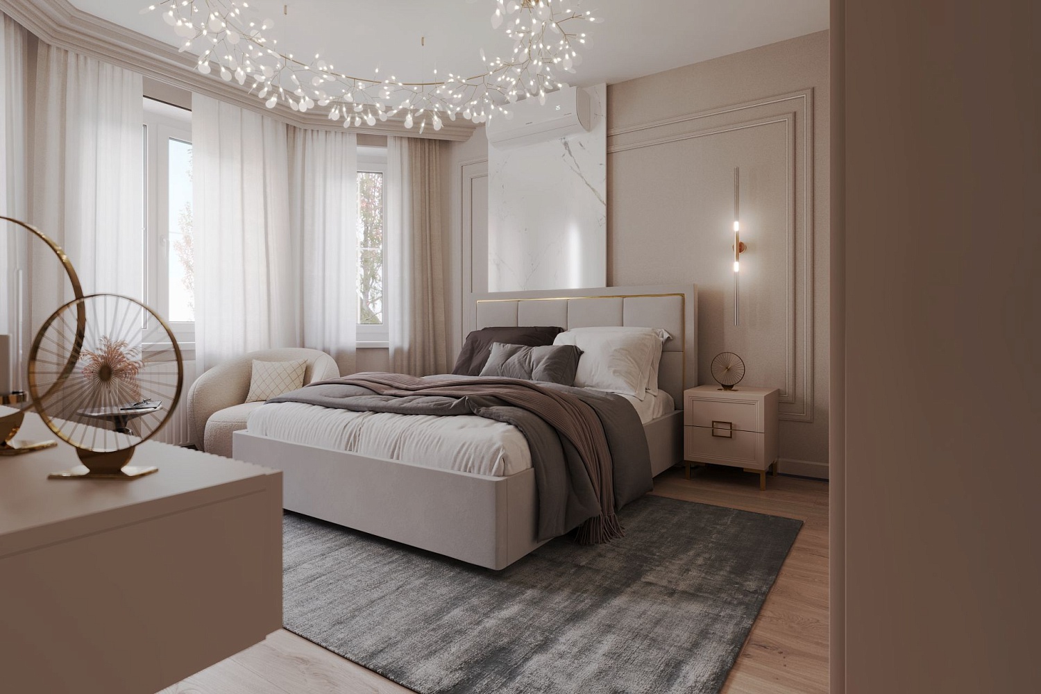 Обивка стильного оттенка «серый кашемир» выполнена из практичного и износостойкого микровелюра. Высокое изголовье простегано декоративной строчкой, украшено по периметру золотой окантовкой. Каркас изделия изготовлен из ламинированной ДСП. Мягкая отделка сводит риск травматизации в ночной атмосфере спальни к минимуму. Упругие ламели ложа обладают ортопедическим эффектом. Металлические ножки-опоры окрашены порошковой краской в серый цвет.