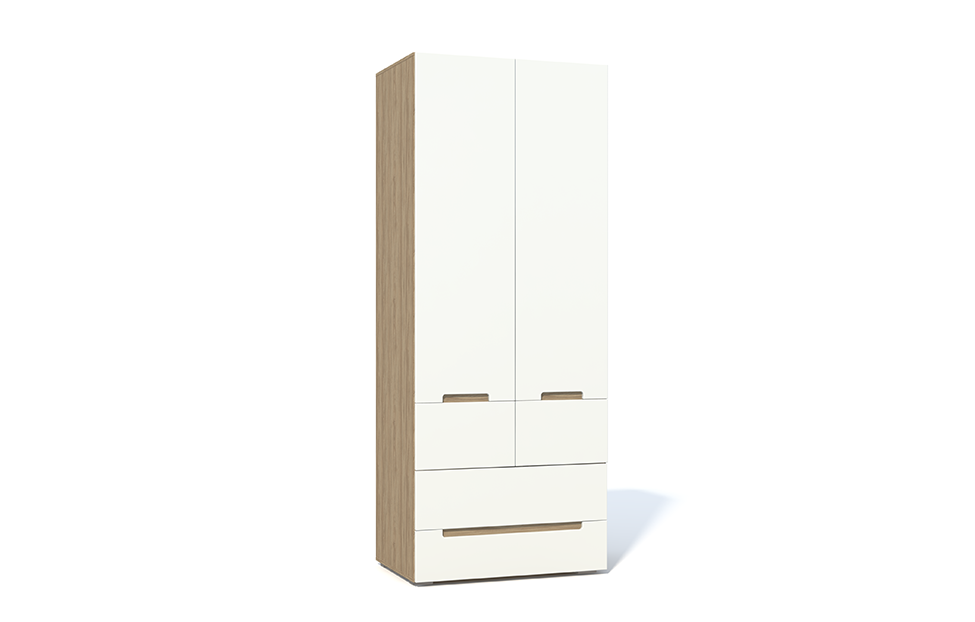 - Шкаф укомплектован полкой, штангой для одежды и двумя выдвижными ящиками в нижнем отделении;