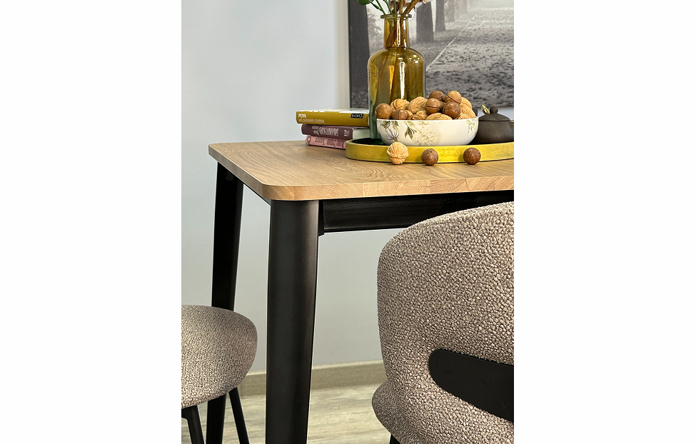 В столе используются уникальные дизайнерские опоры из металла. Тонкие, очень прочные, они дают достаточную ширину для того, чтобы поставить 2 больших стула по широкой стороне стола, и обеспечивают столу идеальную устойчивость
