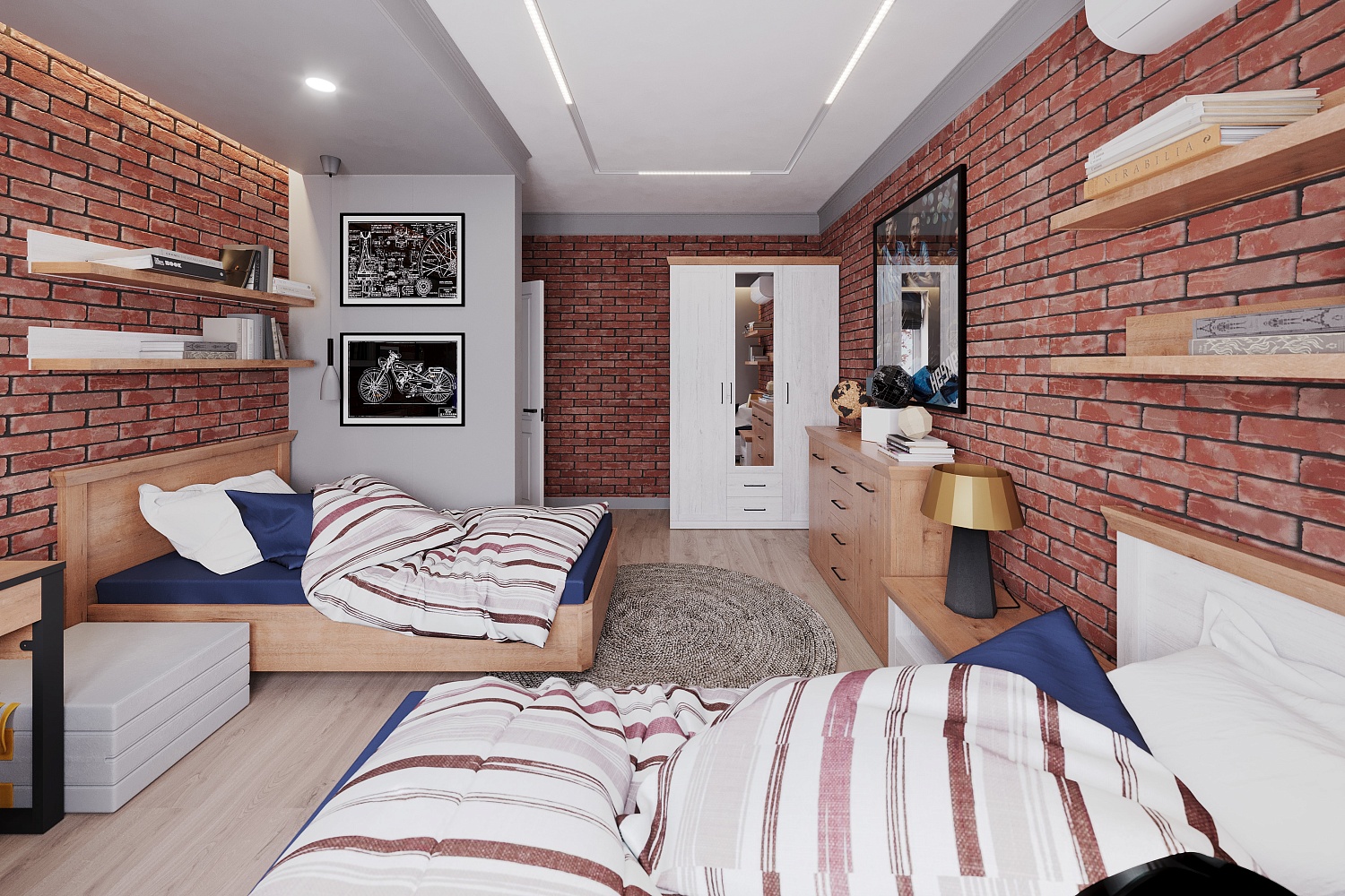 - Молодежная будет гармонировать как с классическими оттенками белого, серого, коричневого, так и с текстурами — деревом, бетоном и кирпичом;